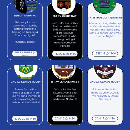 Bristol Harlequins RFC are gearing up for a packed run of rugby and club events as we head into the final weeks of 2025 and start our 2026 campaign. Supporters, players, families, and friends are invited to join us at Valhalla for what promises to be an exciting period for the club.