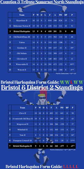 Despite a break in fixtures for Quins, there have been significant changes in both league tables for the 1st & 2nd XV