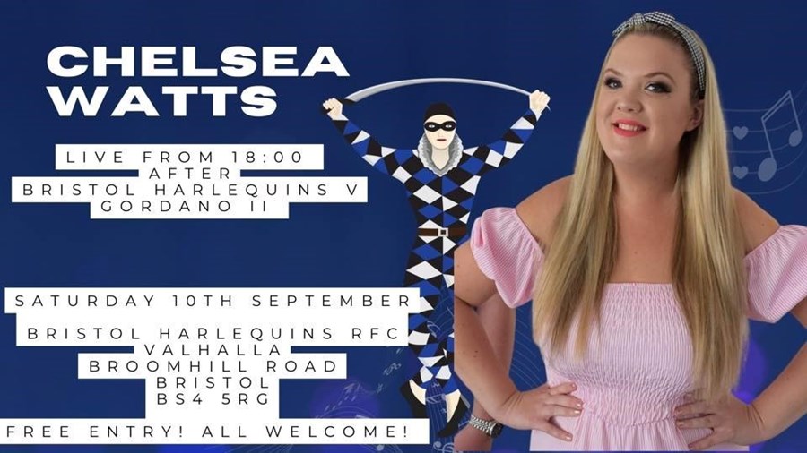 Just after the action finishes on the pitch get ready for some inside the club house as the amazing Chelsea Watts Will be singing live to start the season off with a bang!