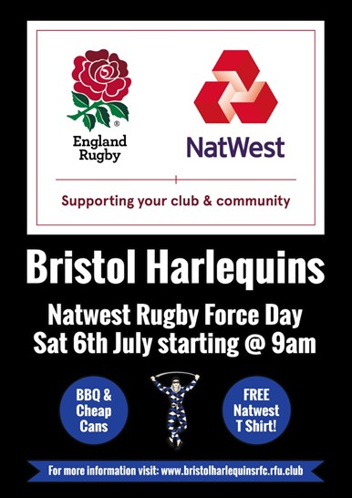 The Natwest Rugby Force day will be held on Saturday the 6th July from 9.00am.
