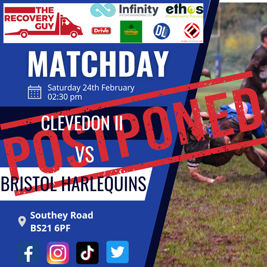 Unfortunately, once again, our fixture against Clevedon II has fell foul to the weather.