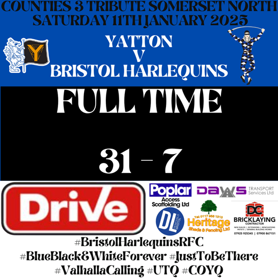 Bristol Harlequins travelled to Yatton for a hard-fought contest that saw the visitors deliver a strong first-half performance before succumbing to a second-half comeback from the home side.