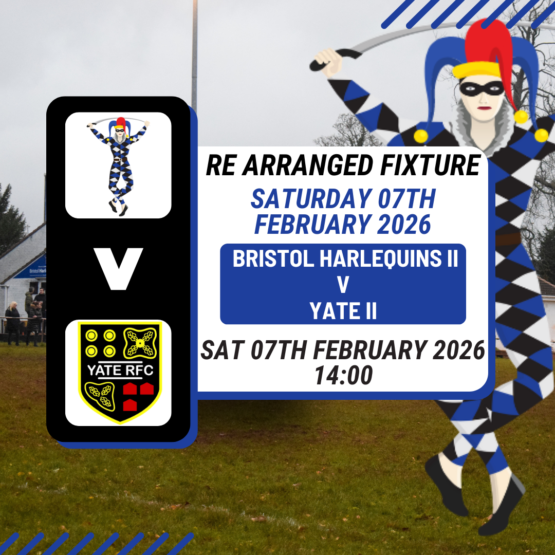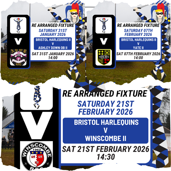 Bristol Harlequins RFC can confirm a number of re-arranged fixtures for the early part of 2026, with three important league matches now locked in across January and February.