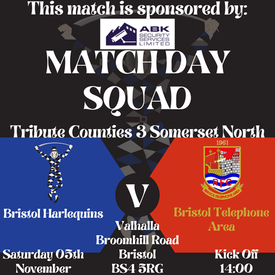 Here are the lads that take on Bristol Telephones Area RFC - don't forget kick off is at 14:00!