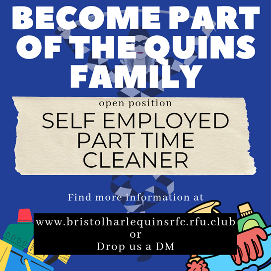Bristol Harlequins RFC is seeking a reliable, self-employed part-time cleaner to join the club and help maintain our facilities at Valhalla, Broomhill Road, Brislington.